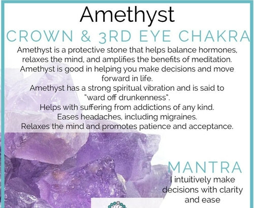 Amethyst aids the Heart, Third Eye and Throat Chakras